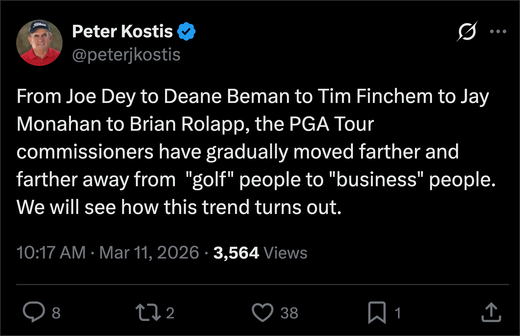1. We’ll get to the tentpole points — which felt like they were peeled right off of a golf twitter thread! — here in a minute, but let me start with something Peter Kostis said.