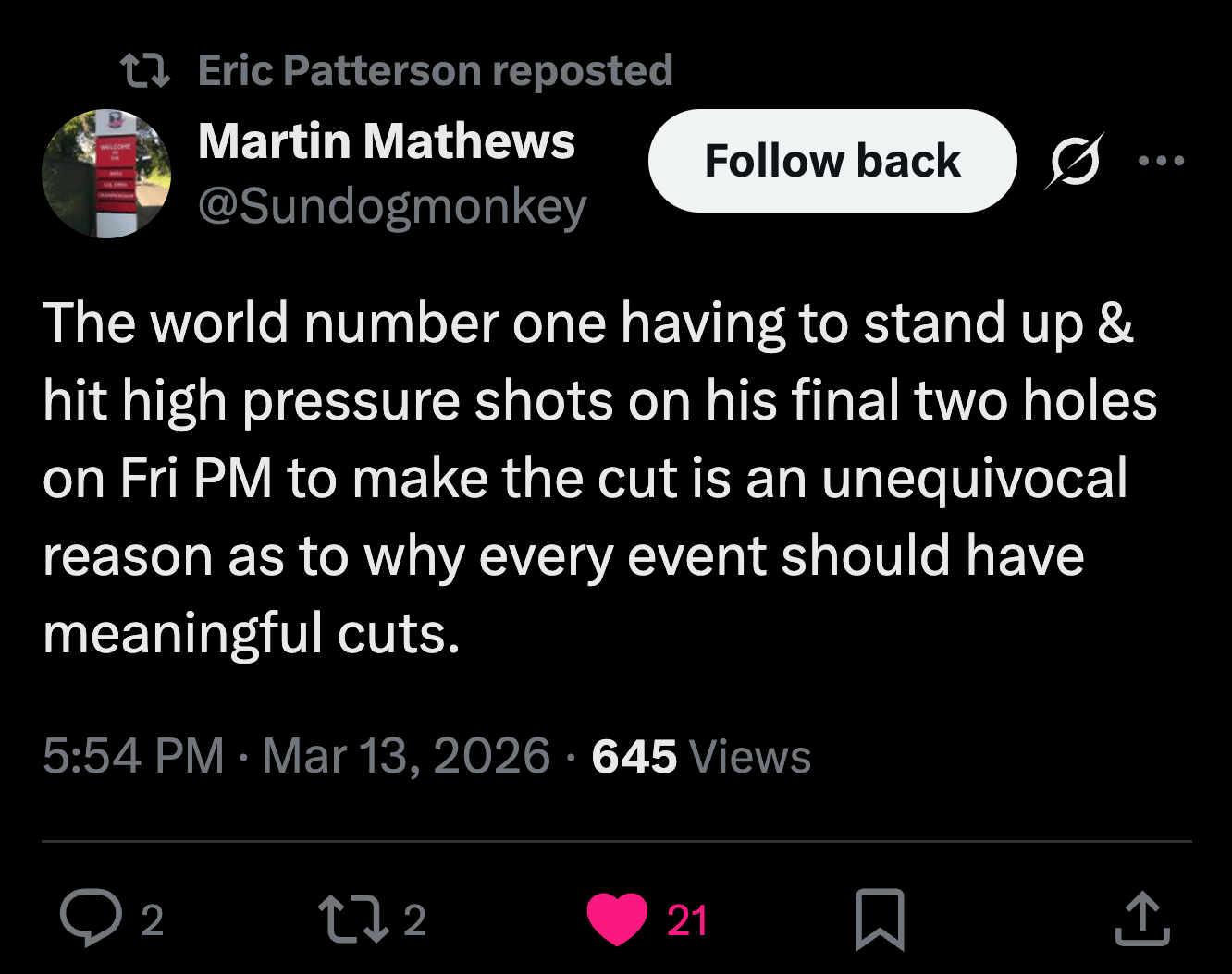 Here’s what I wrote on X (the everything app, not Xander Schauffele).